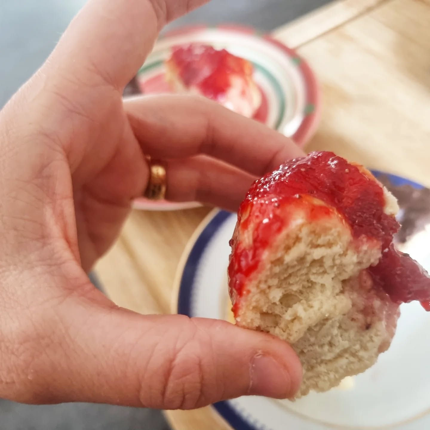 Doce de morango (morangos triturados e açúcar em calda) Mergulhar o donut para ficar coberto pela metade
