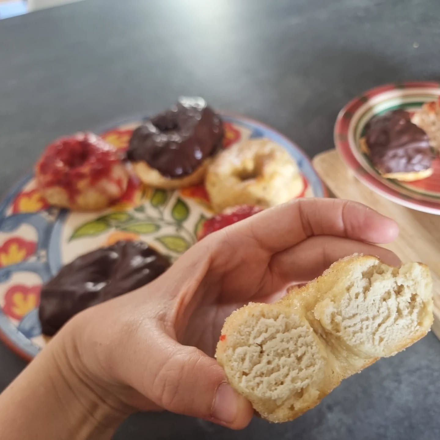 Canela e açúcar (derreter manteiga e pincelar os donuts e depois com ajuda de um prato passar no açúcar e canela
