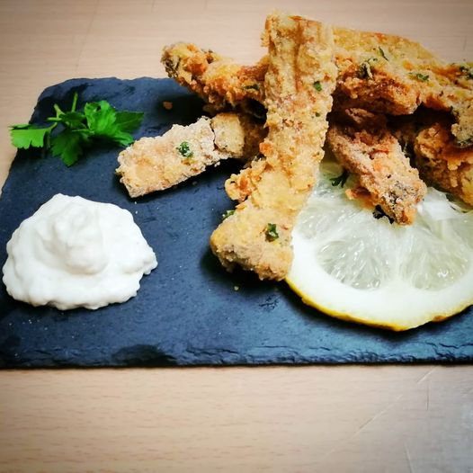 Olha o "naoChoco frito" com limão e Maionese de alho e ervas.