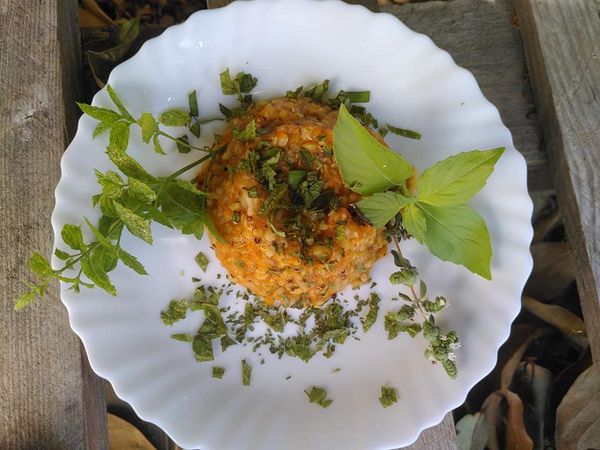 Deixar secar e arrefecer e servir com mais ervas aromáticas picadas.